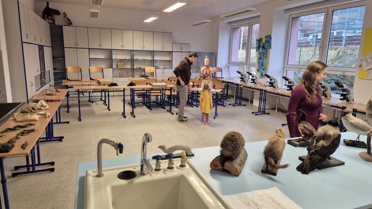 V nové učebně fyziky a chemie čekalo na příchozí představení ohromujících chemických pokusů, dále např. model elektromotoru a ukázky měření se systémem Vernier, např. měření síly stisku ruky, záznam EKG či měření rychlosti větru. Velkým lákadlem, zejména pro děti, byly 3D brýle s virtuální realitou, které nabízely neobvyklé vizuální zážitky, např. setkání s dinosaury.